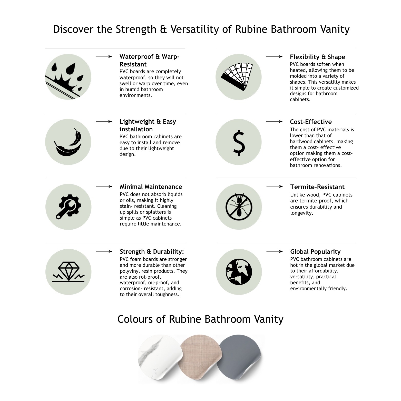 Cabinet – PVC | Shelf – Stainless Steel | Countertop – Stone | Basin – Ceramic